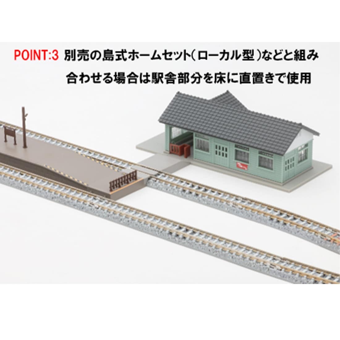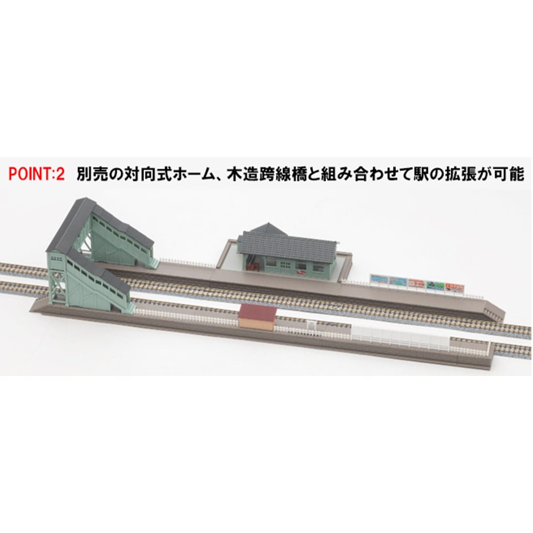 ・別売の<4001>対向式ホームセット、<4003>対向式ホーム延長部セット、<4004>木造跨線橋と組み合わせることで駅の拡張が可能