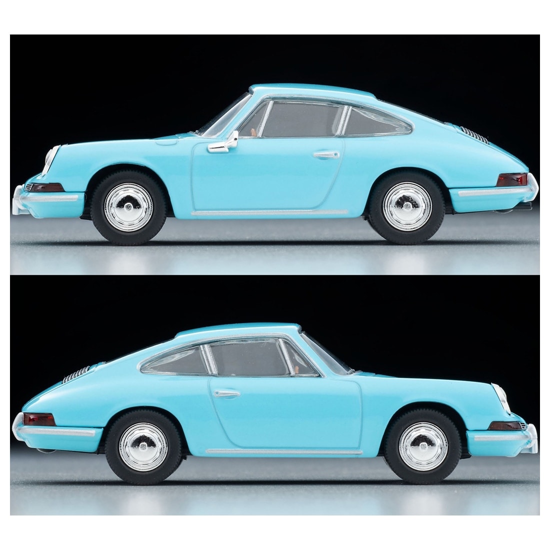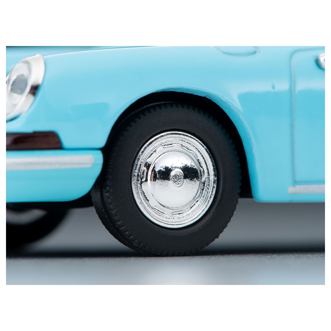 水色の911は初期型を再現、特有のバンパー形状やエンブレム類などにご注目ください。
