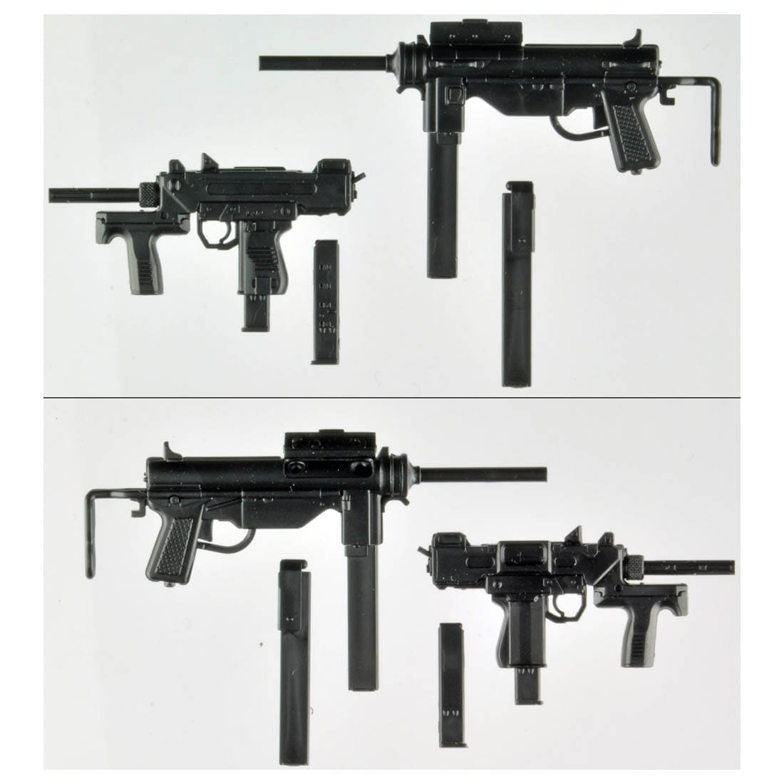 いわゆる長物ガンの基本といえる機種をセレクト。アサルトライフルの人気モデル「M4」、世界中に普及した「AK」、シンプルなSMGのグリースガン、自衛隊の9mm機関拳銃、オートショットガンの代表格「M1014」。
