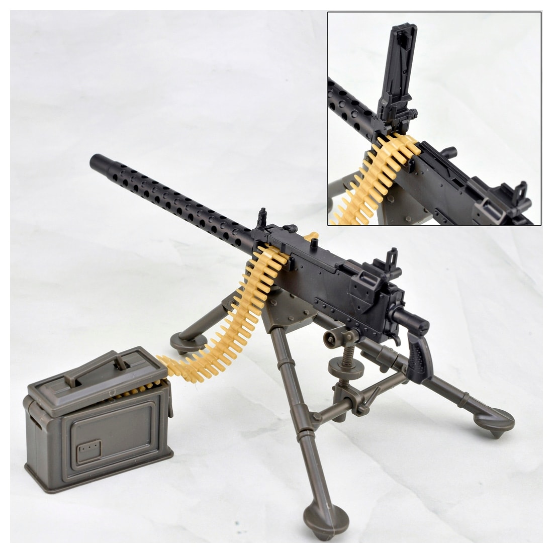 弾薬箱、軟質樹脂製の弾帯、M2トライポッドもセットにし、軽快ながら重機関銃らしい存在感とリアリティを演出します。