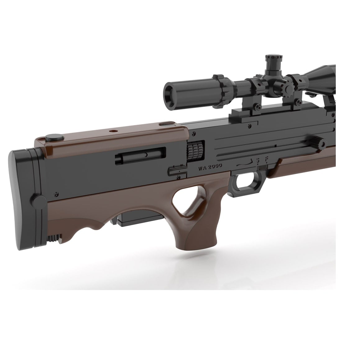 スナイパーライフルWA2000は、タイト設計の手動式スナイパーライフル並みの精度と、セミオートマチックライフルならではの射速の併せ持つ、西ドイツ製の高性能・高級セミオート式狙撃銃です。