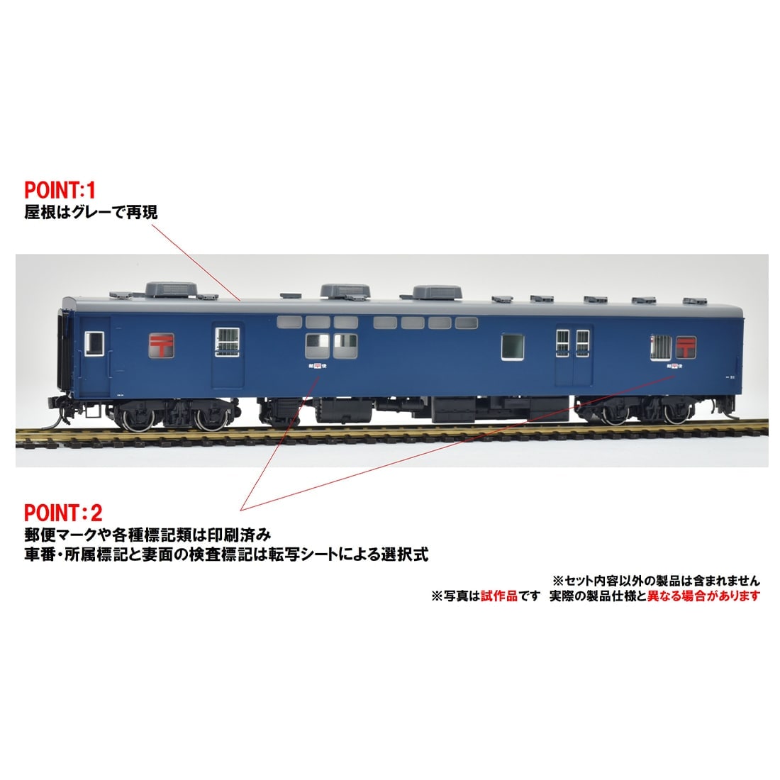 POINT 2:郵便マークや各種標記類は印刷済み 車番・所属標記と妻面の検査標記は転写シートによる選択式