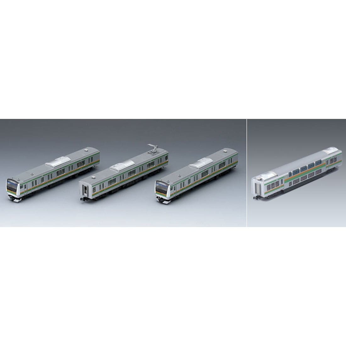 ●ダブルデッカー構造のグリーン車を含む1・5・7・10号車の4両セットで、増結セットと合わせて10両編成を再現可能