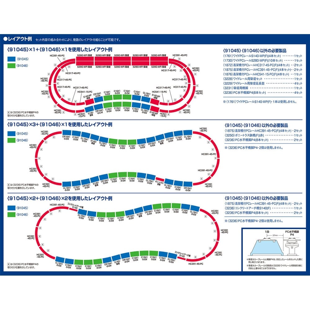 ●別売の<91045>築堤大カーブS字レールセットの曲縁部分を延長するためのセット