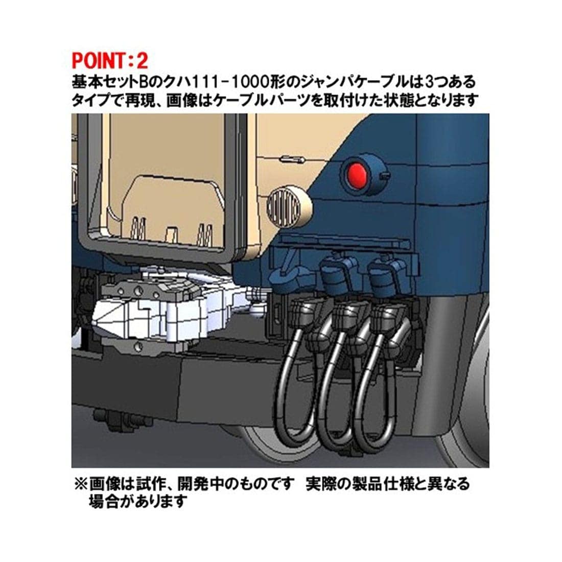 POINT 2:基本セットAのクハ111-1000形のジャンパ線表現は、幕張所属車に多く見られたジャンパケーブル1本タイプで再現。ジャンパ栓パーツ交換でケーブルパーツの取付ができます