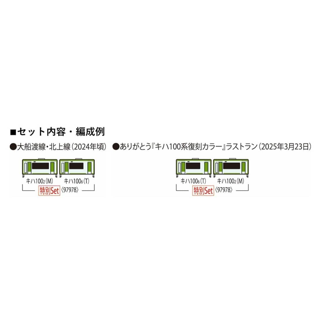 ・2025年3月に引退したキハ100-2形復刻カラー車両とキハ100-6形の2両セット