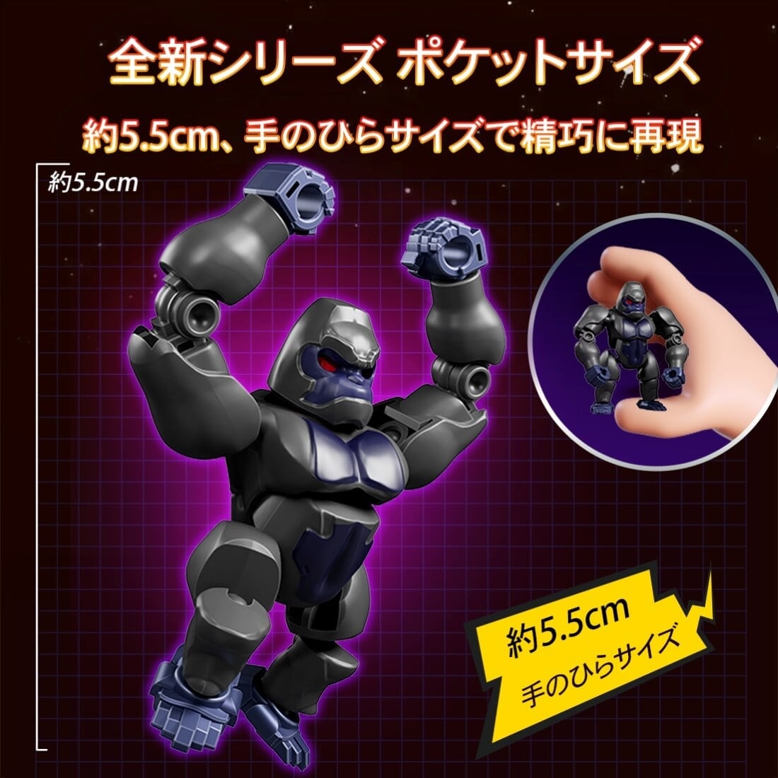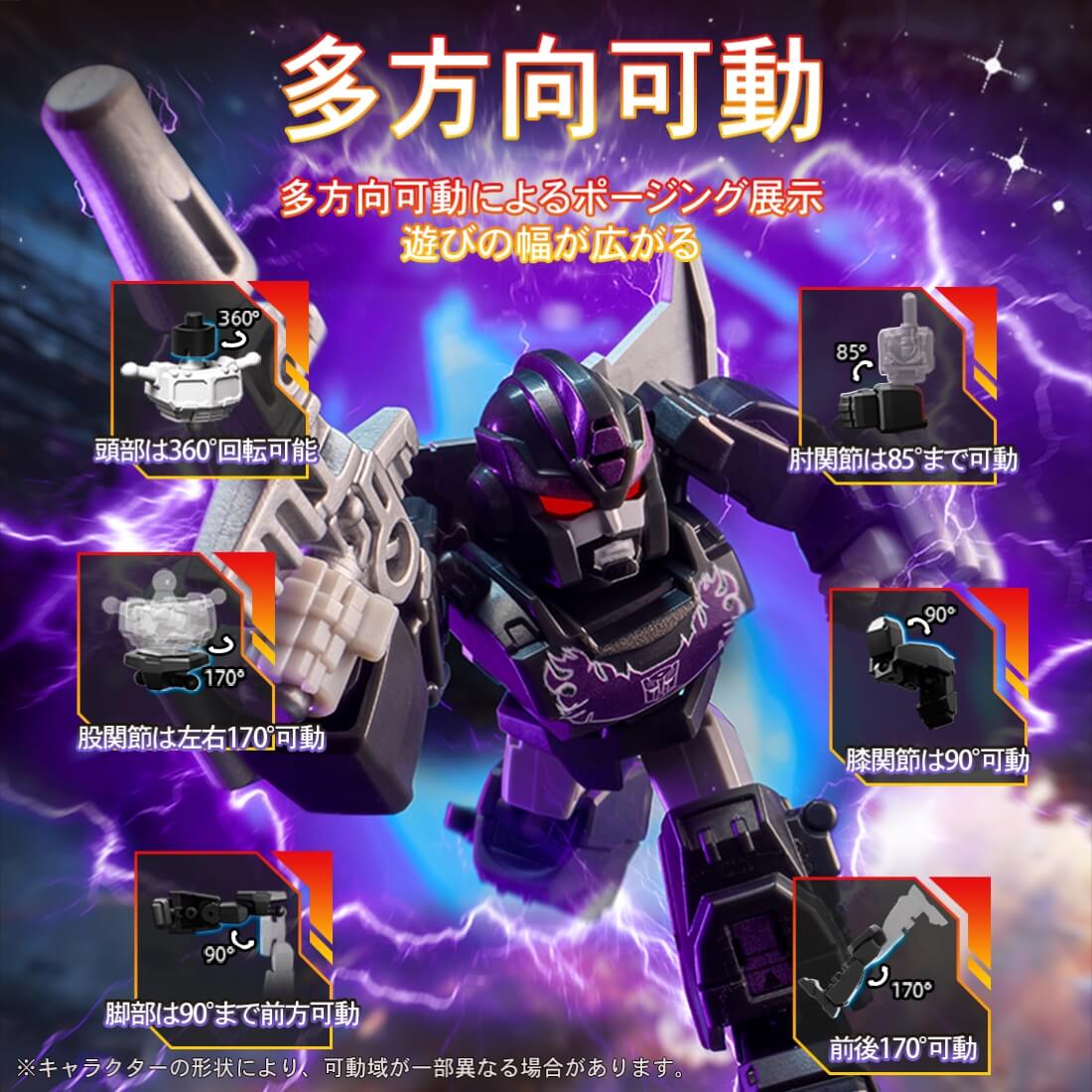 各キャラクターは、全高約5.5cmのコンパクトなサイズながら、14か所の可動構造を搭載し、多彩なポージングをお楽しみいただけます。小さなサイズの中に、遊びごたえと造形の魅力を凝縮しました。