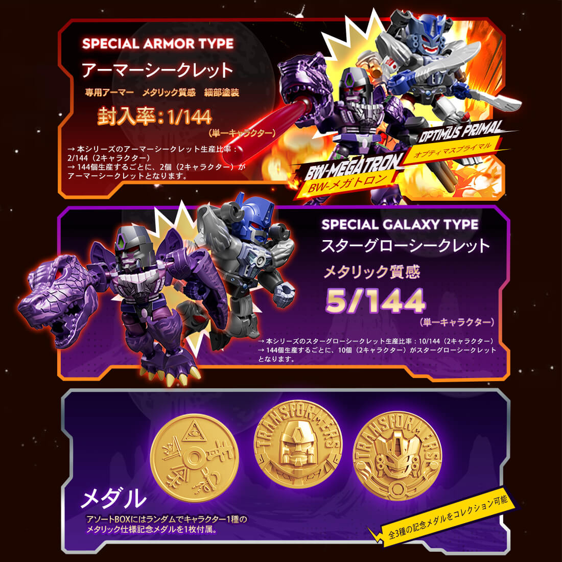 | 著作権 | © TOMY 「トランスフォーマー」、「TRANSFORMERS」は株式会社タカラトミーの登録商標です。 |