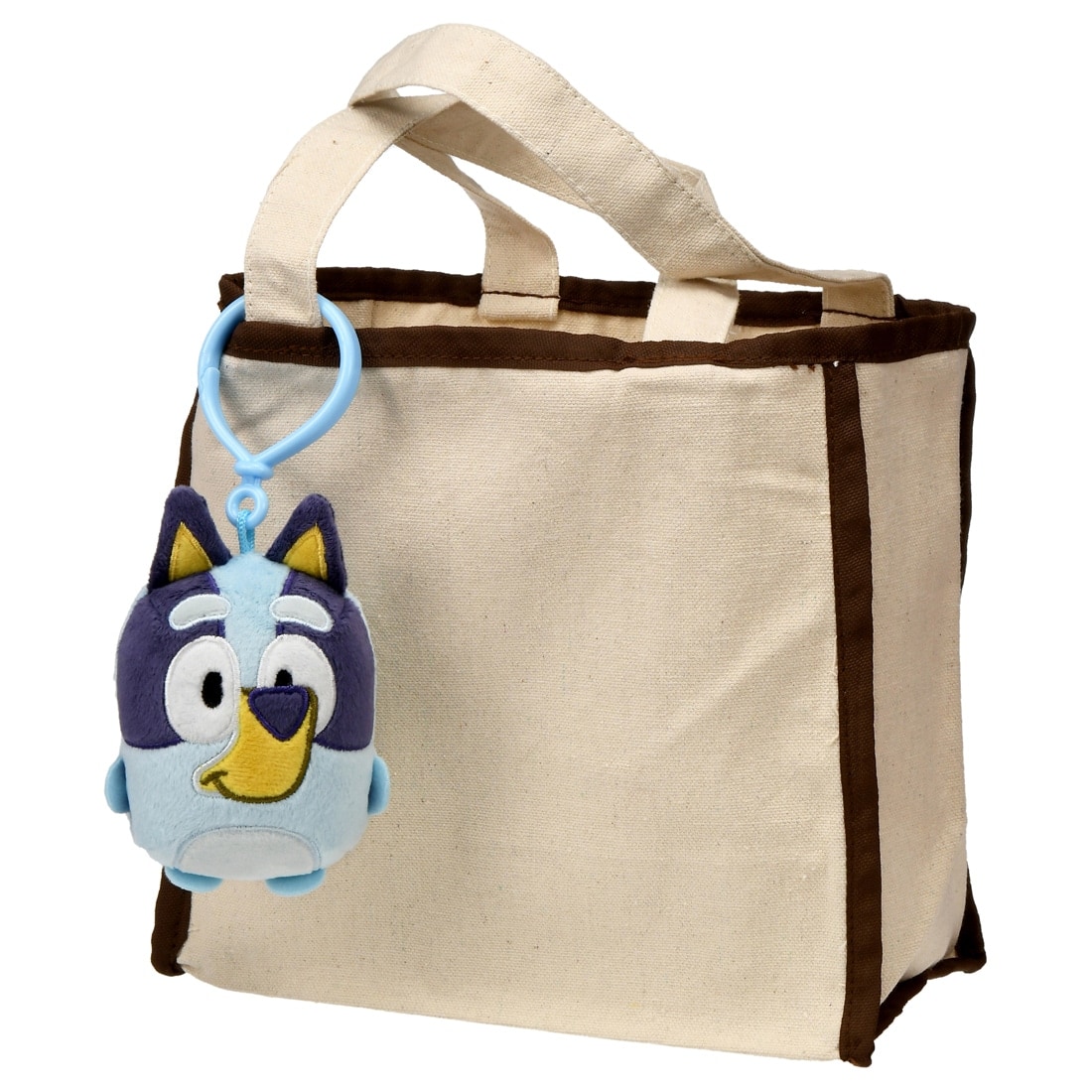 This cute Bluey character mascot comes with a hook so it can be carried around easily.
