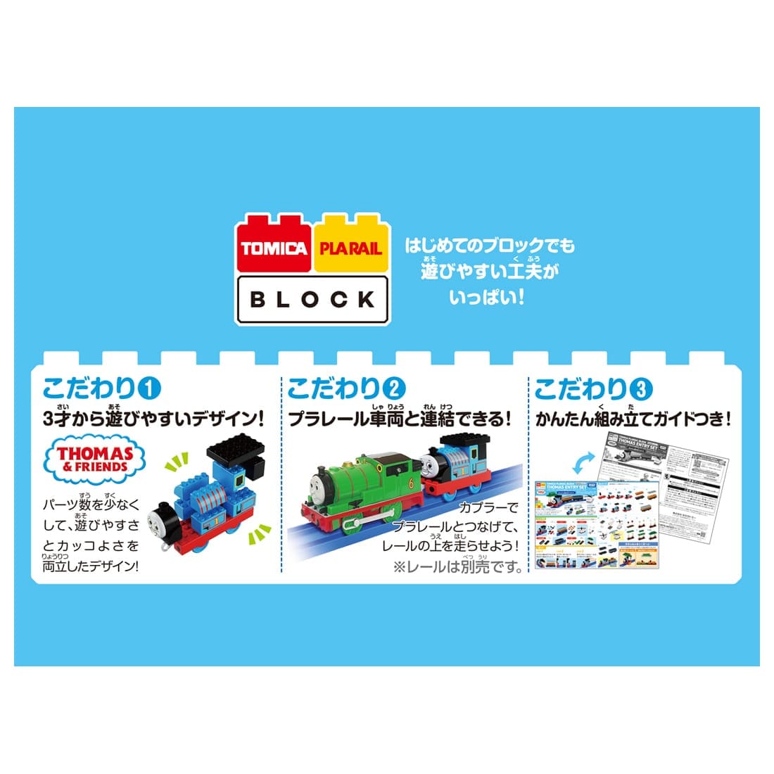 初めてでも簡単で、トミカやプラレールといっしょに遊べる楽しいブロックが登場! 全37パーツのブロックを使って、『きかんしゃトーマス』のなかまたちををキミの手で組み立てよう!