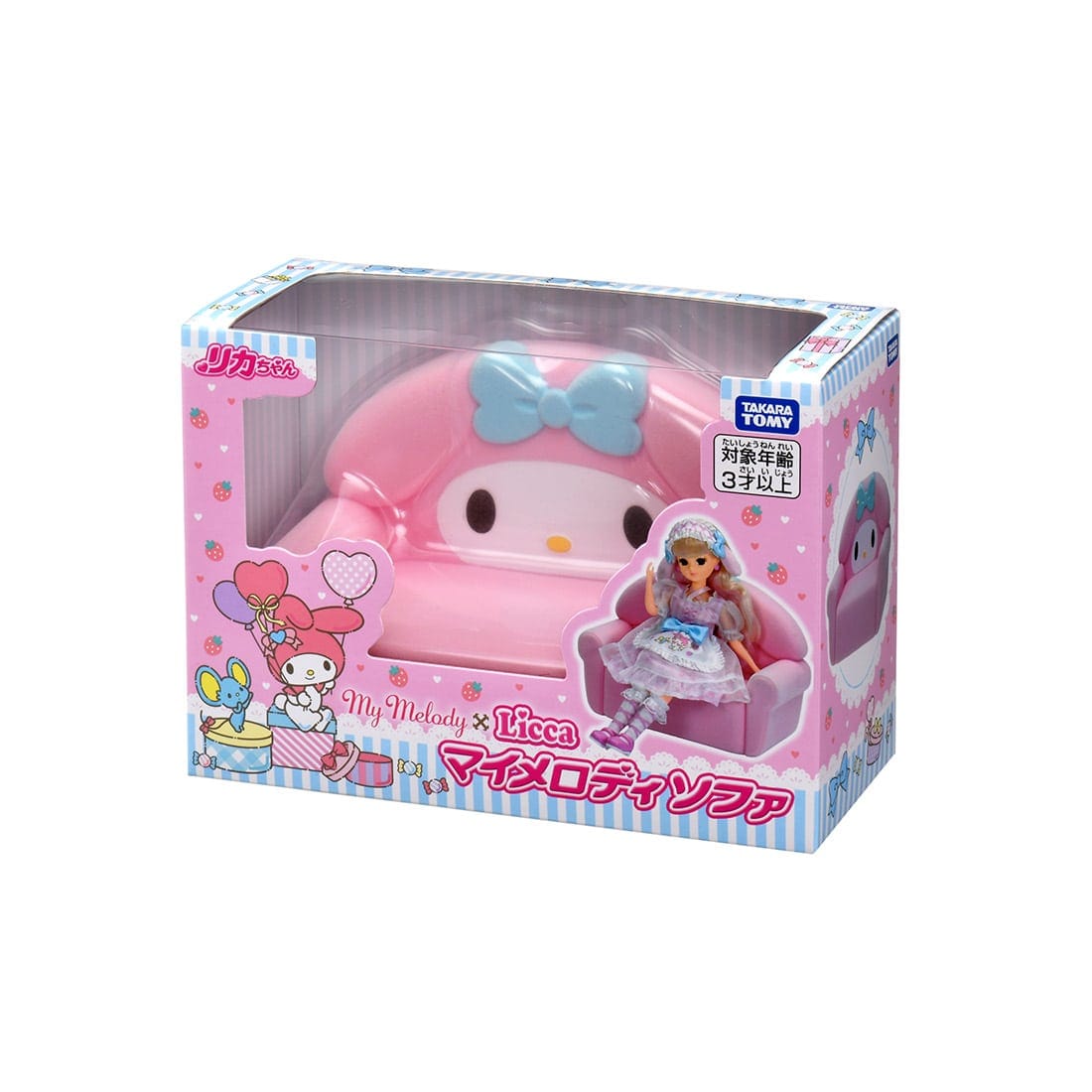 マイメロディのかたちをした、リカちゃんサイズのふわふわソファーです。