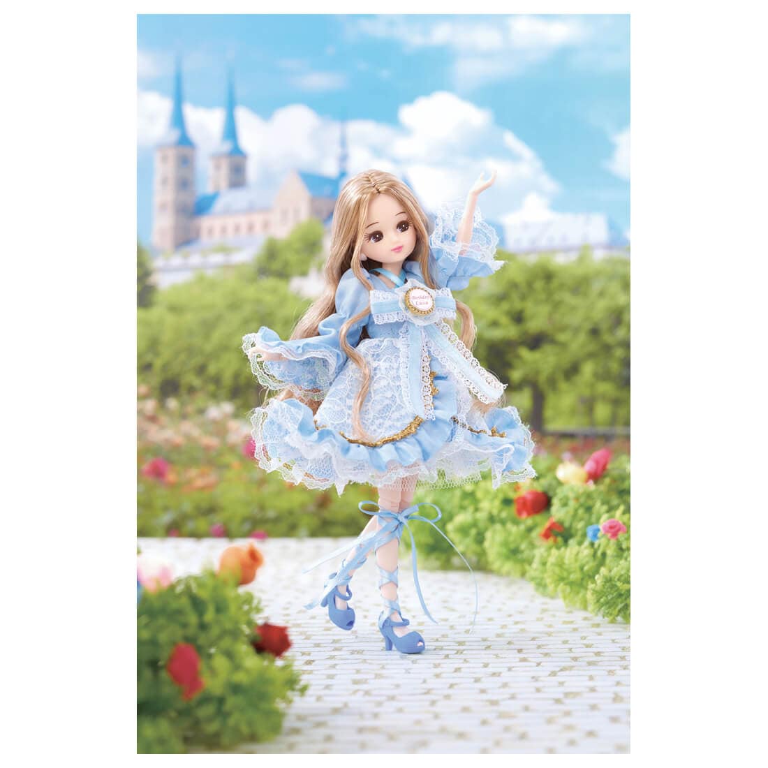 陶器のような白いボディカラーとスペシャルなヘアカラー。大きなボンネットつきの豪華な衣装は、エンブレムつきで、バースデーの特別仕様です。