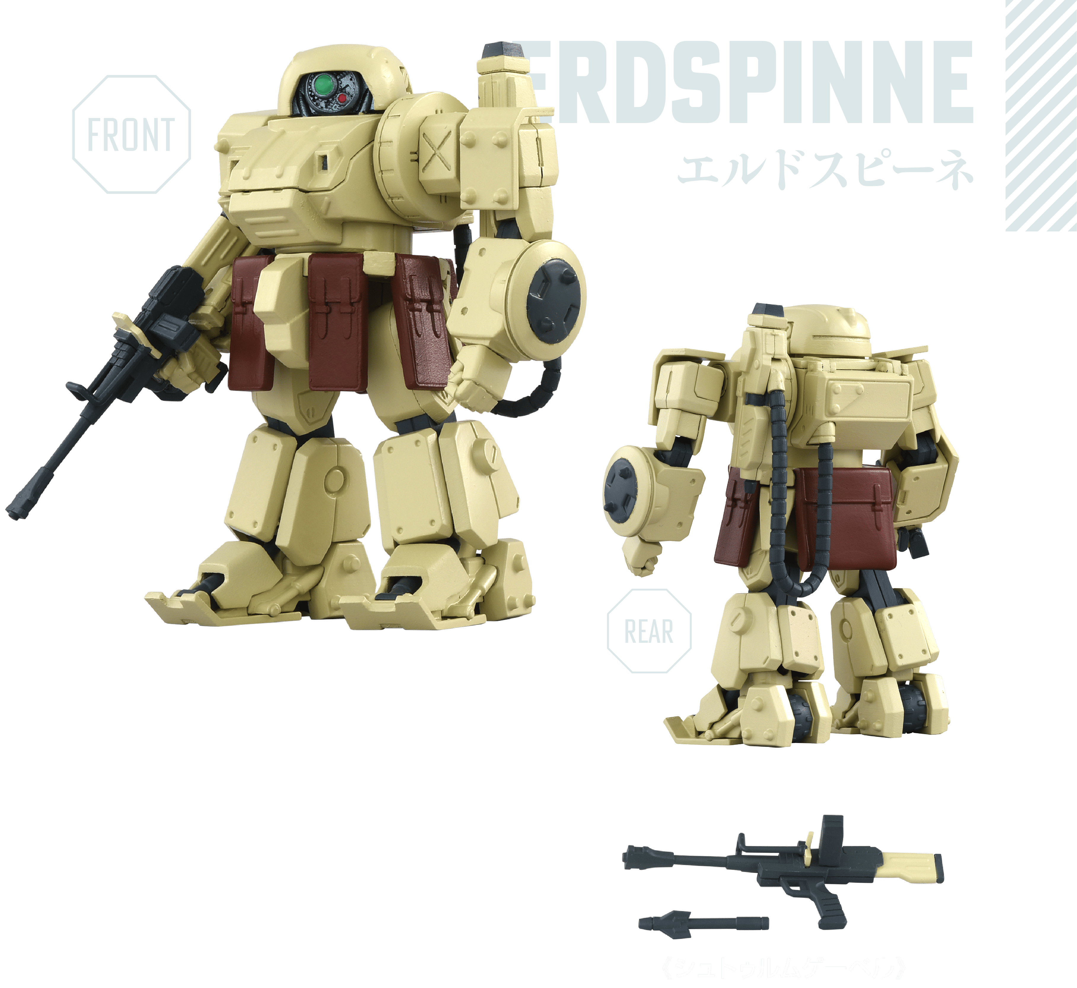 アクティックギアでは未商品化だったOVA『装甲騎兵ボトムズ 赫奕たる異端』で活躍したアレギウム防衛用H級AT『エルドスピーネ』が遂に待望の商品化!