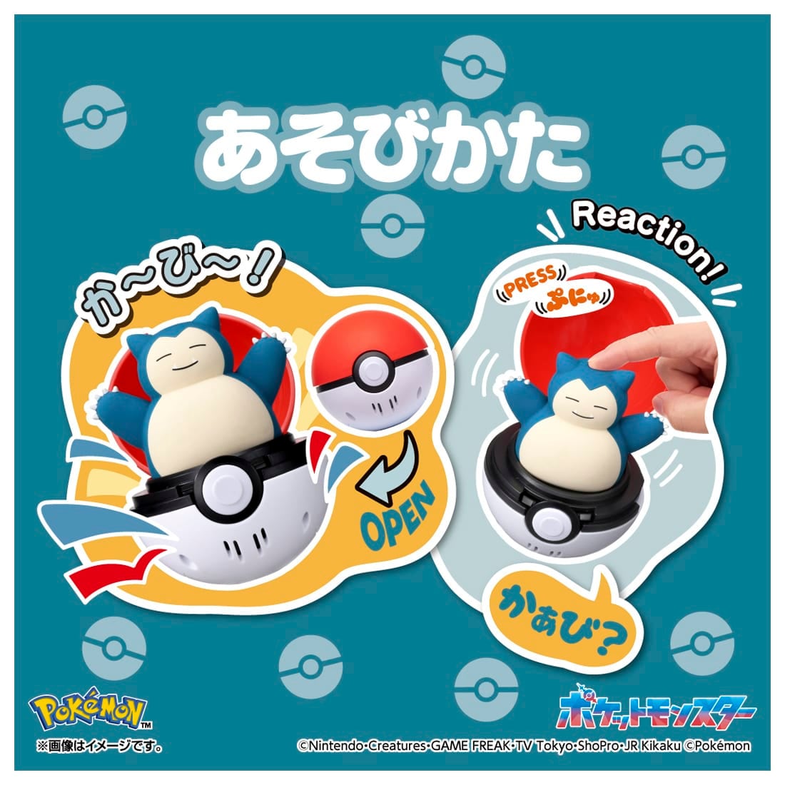 モンスターボールを開くたびに、カビゴンがぴょこっと出てくる!