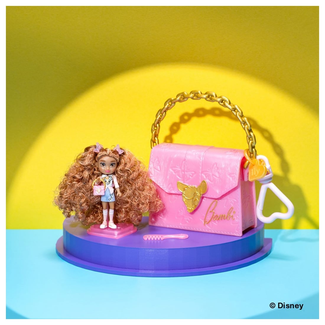 ・約6cmの植毛ミニドールと、ミニバッグ、ドール用小物、ドールスタンドが付いたコレクションアイテムです。