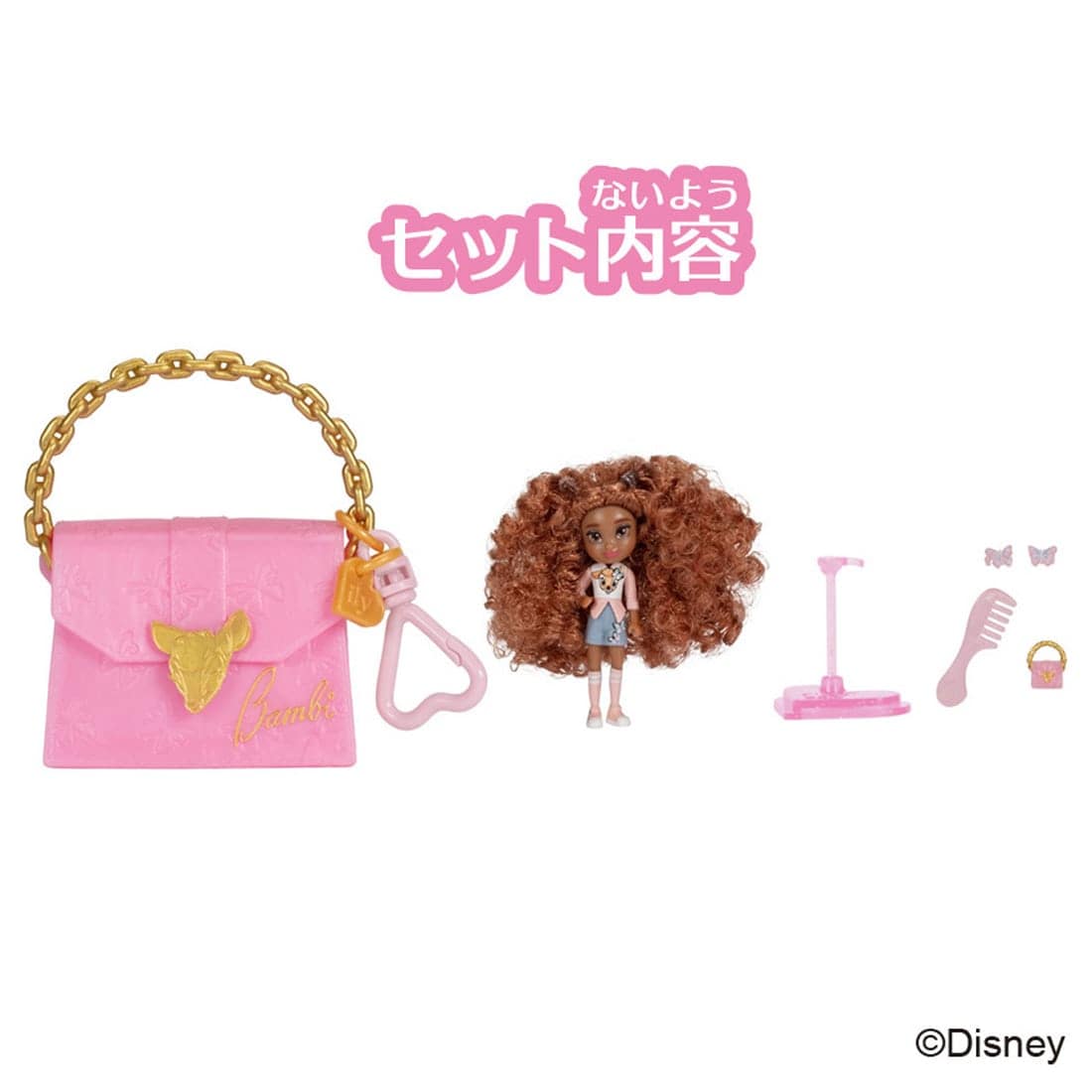 | 商品内容 | チャーム付きバッグ(1)、人形(1)、人形スタンド(1)、ヘアクリップ(2)、人形用ミニバッグ(1)、くし(1) |