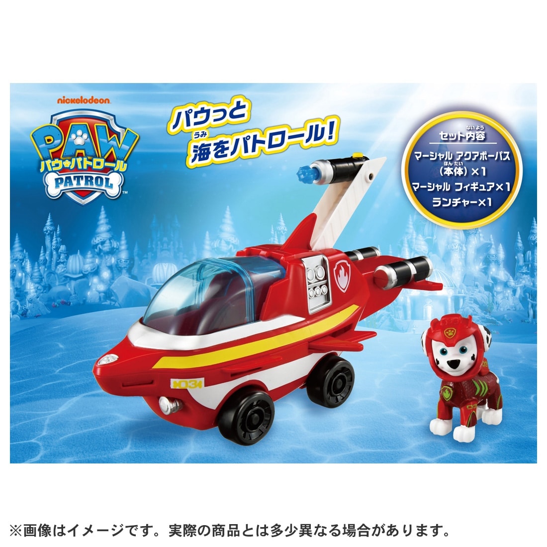 海がテーマの「アクア パウ・パトロール」より、マーシャルのベーシックビークル「アクアポーパス」が登場です。