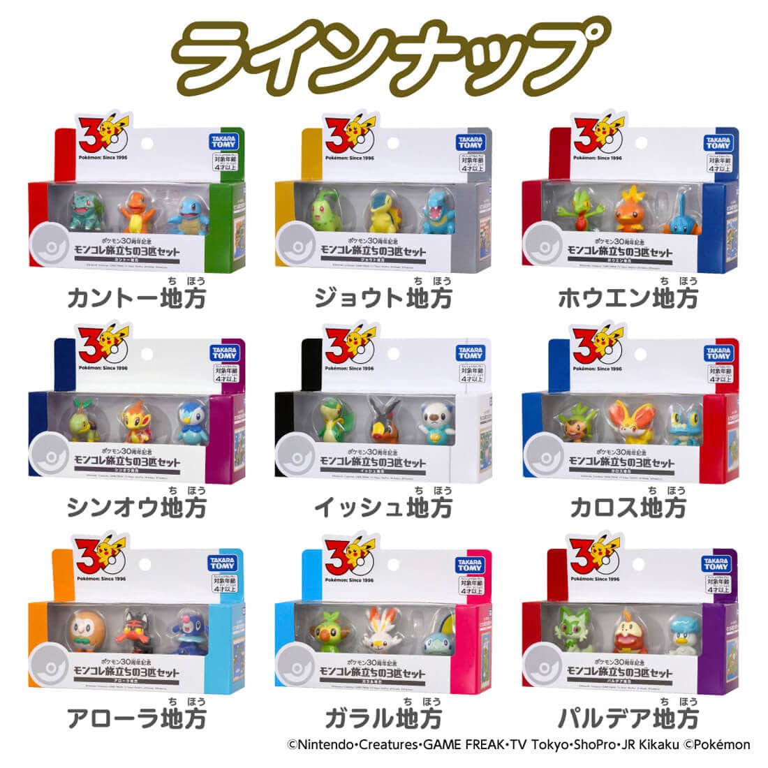「モンコレ旅立ちの3匹セット」はカントー地方からパルデア地方まで、