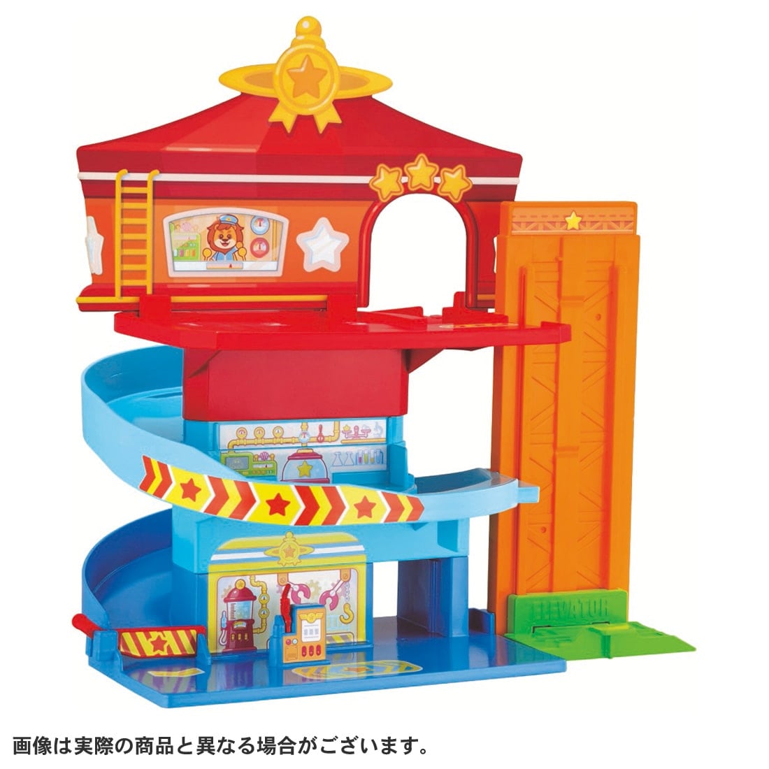 | 商品内容 | 本体1F(1)、本体2F(1)、本体3F(1)、エレベータータワー(1)、エレベーター(1)、スペシャルトミカ レッツとブルン メタリックレッドver.(1)、パネル(1)、シール(1) |