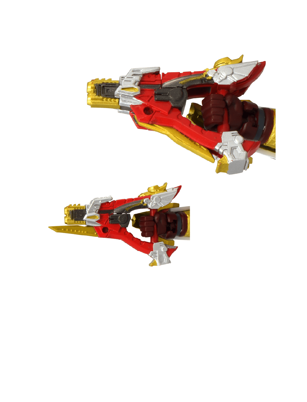 ゴウリュウガンのブレードが可動し、ソードモードへの変形を差し替えなしで再現可能。グリップの内部は3mm軸を備え、一部パーツのつけ外しによって手でしっかりと保持することが可能。