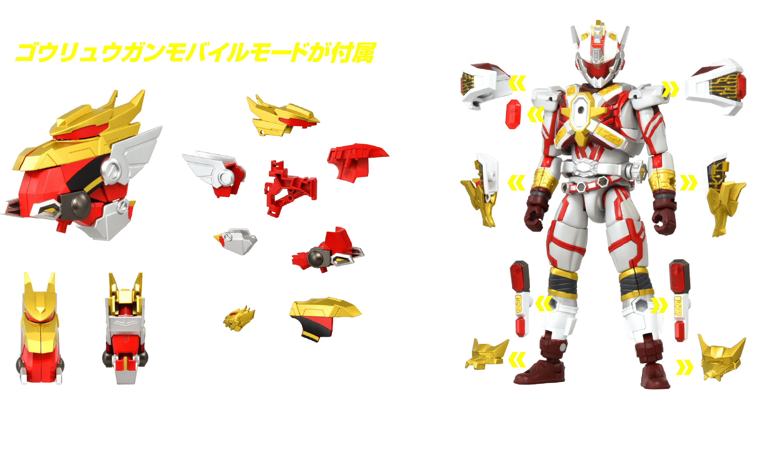 ゴウリュウガンモバイルモードを分解することで、リュウガンオーの強化アーマーとして装着が可能。 リュウガンオーのアーマーと交換することで、トイライズオリジナルの形態「アーマライズリュウガンオー」が誕生する。