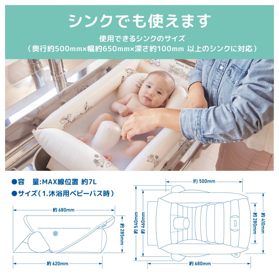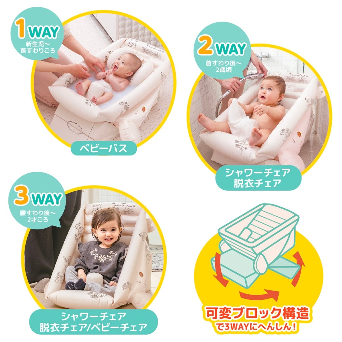 3WAYに簡単変形で長く使えるくまのプーさんのベビーバス!