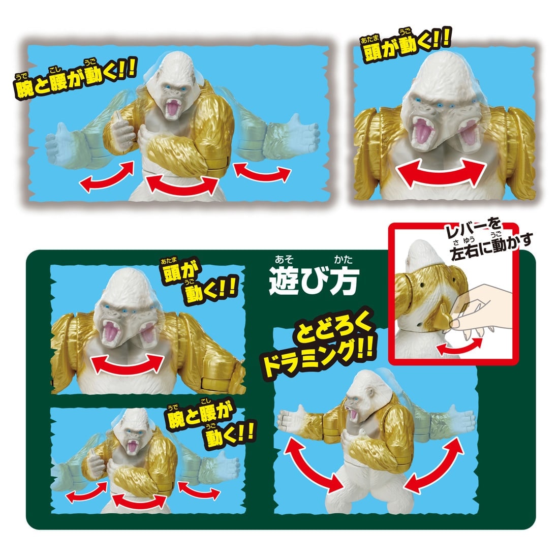 さらに、レバーを左右に動かすと、腕、腰が動き『とどろくドラミングアクション』が楽しめます。