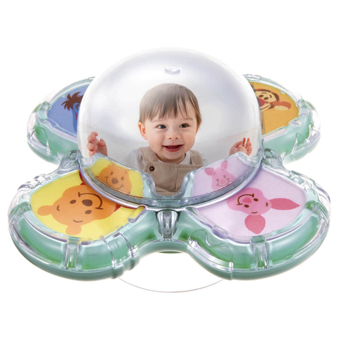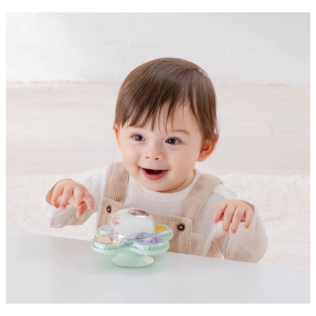 吸盤で固定でき、赤ちゃんの力でも回しやすいスピナーです。