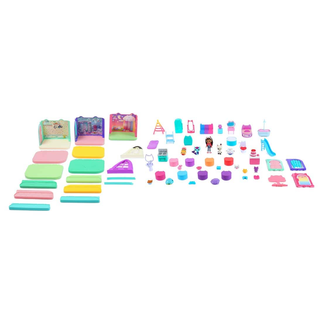 Product DetailsBig Cat House Dollhouse Parts (18), Roof Parts (4), Delivery Cat Tower (1), Garden Tree (1), Accessory Parts (13), Figure (Gabby Pandy) (2), Sticker and Cat Ear Mount (1), Pillow Cat's Bedroom (Wall/Door) (1), Pillow Cat's Bedroom Floor (2), Bed, Bed Curve, Chest plush toys ・Figure (1), Cat Box (2), Surprise Accessories (2), Mercat's Bathroom (Wall/Curtain) (1), Marcat's Bathroom Floor (2), Fururo, Dresser, Rack, Figure (1), Cat Float (1), Cat Box (2), Surprise Accessories (2), Cake Kitchen Room (Wall/Door) (1), Cake kitchen room floor (2), Reizoko, tana, oven, and figure (1), cupcake tray (1), cat box (2), surprise accessories (2), Instruction manual (1)