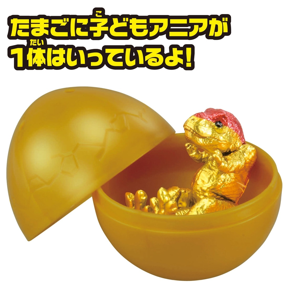 たまごを開けると、中から「冒険大陸 アニアキングダム キングゴールドマウンテン編」に登場するキャラクターの、子どもサイズアニアが出てきます。
