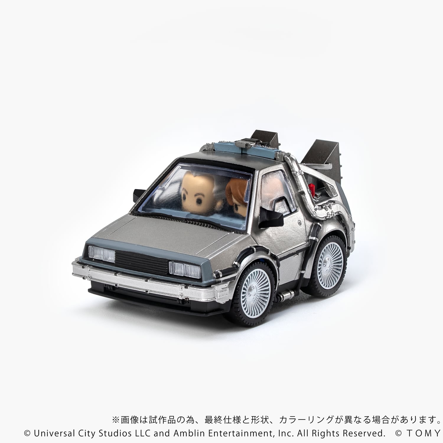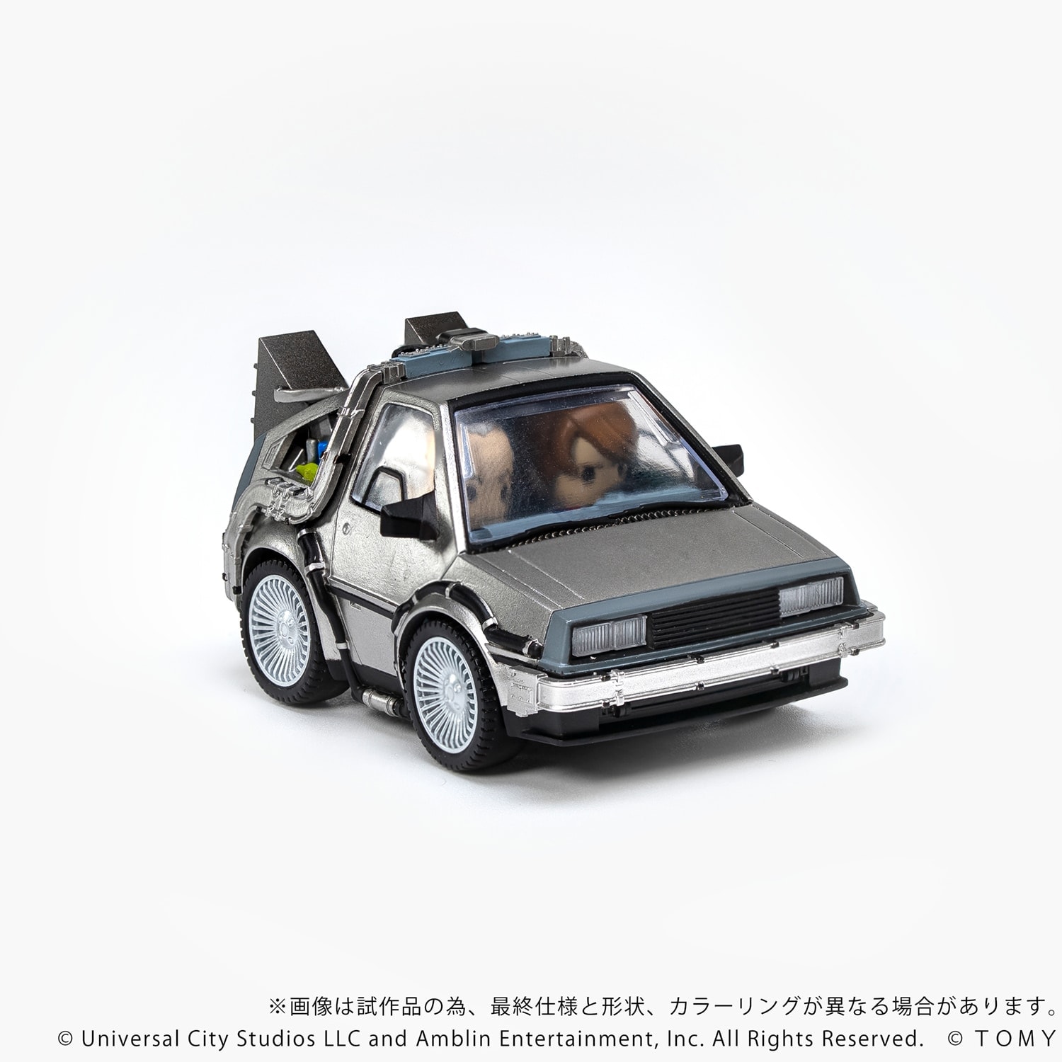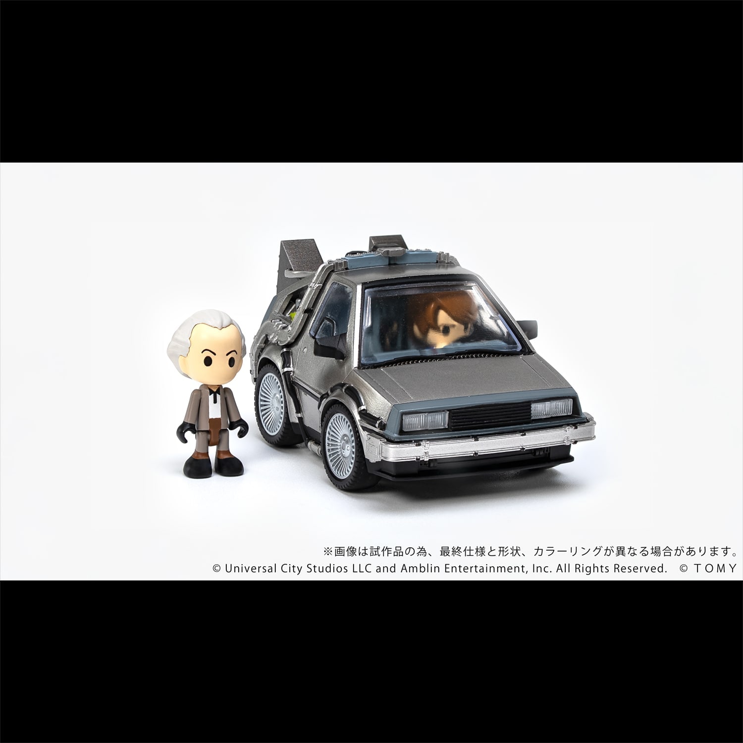 映画『バック・トゥ・ザ・フューチャー(Part1)』より、タイムマシンとドク、マーティのセットです。