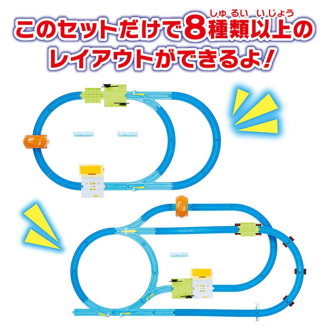他にも人気のレイアウト「坂」「立体交差」「駅」「踏切」「トンネル」「橋」が全部入ってこれひとつですぐに遊べる!