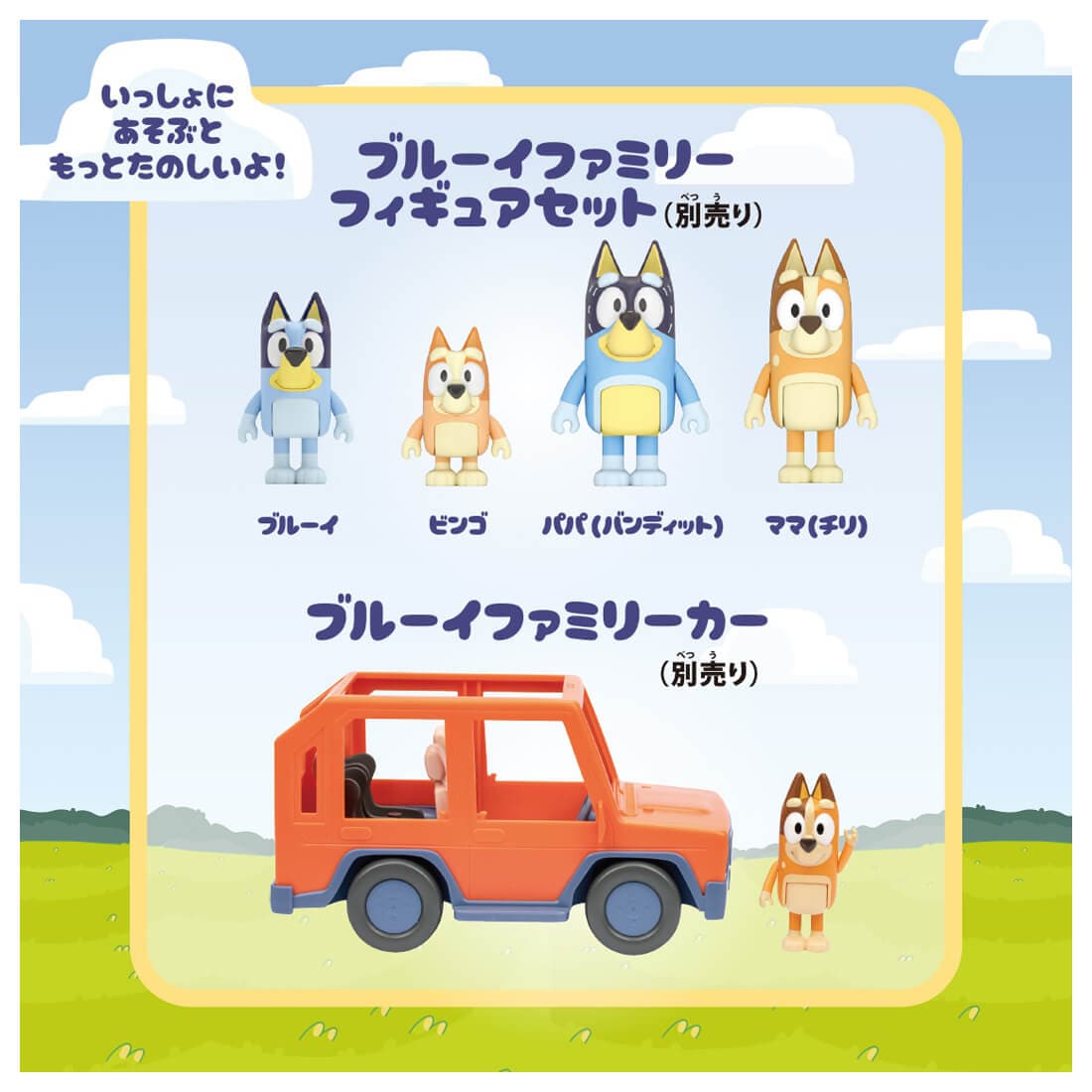 別売りの「ブルーイファミリーフィギュアセット」や「ブルーイファミリーカー」と一緒に遊べます。