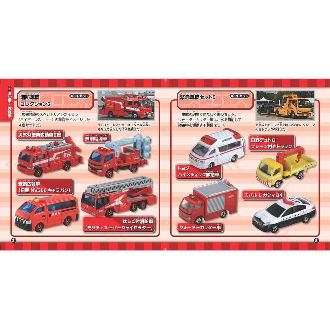 トミカのはたらく車を、「パトカー」、「消防車・救急車」、「建設・作業車両」、「いろいろなはたらく車」の4グループに分けて紹介しているぞ。本物の車の写真と見くらべたり、キミの近くでどんな働きをしているのかしらべて、車にもトミカにも、もっとくわしくなっちゃおう!